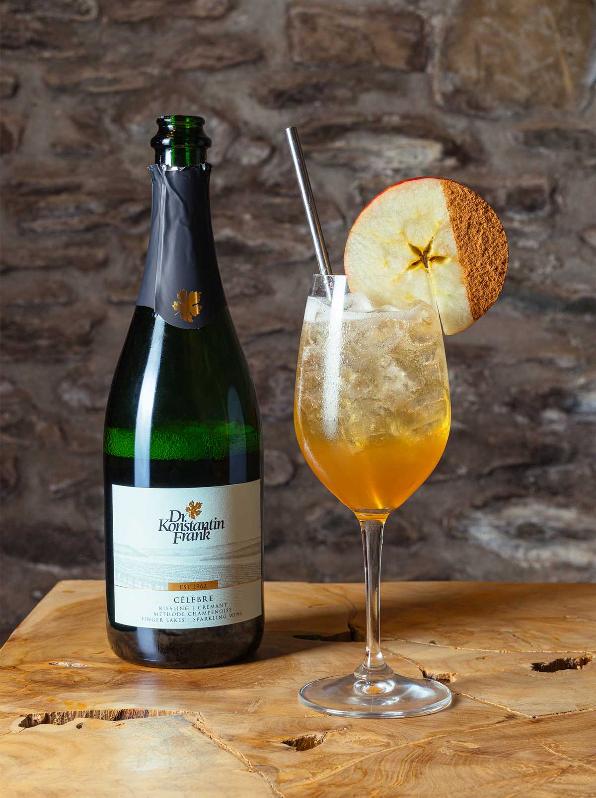 Stir gently. Top with 3 oz of Dr. Konstantin Frank Célèbre.