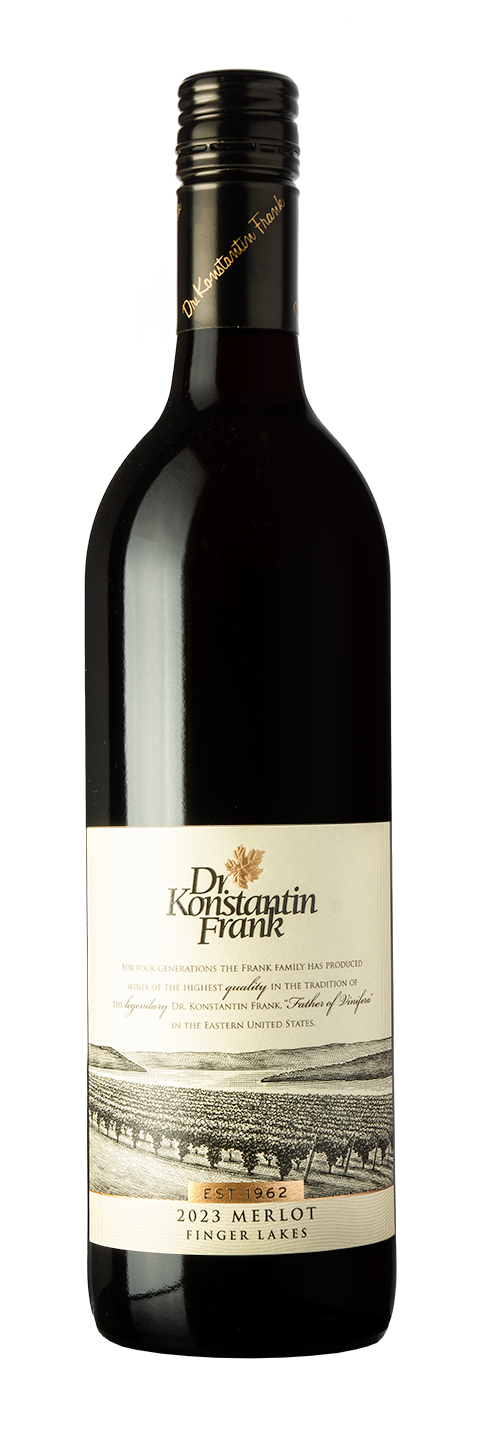 The 2023 Merlot opens with a medium ruby hue and a deep, expressive nose of blackberry, black cherry, and dark plum, accented by hints of leather, fresh violets, and warm cedar spice. On the palate, it is medium-bodied yet full-flavored, offering rich layers of ripe black fruit supported by notes of black pepper and oak-driven complexity. The tannins are medium-plus and grippy, adding structure and framing the wine’s long, confident finish. A refined cool-climate Merlot that balances depth, spice, and elegance with age-worthy potential.